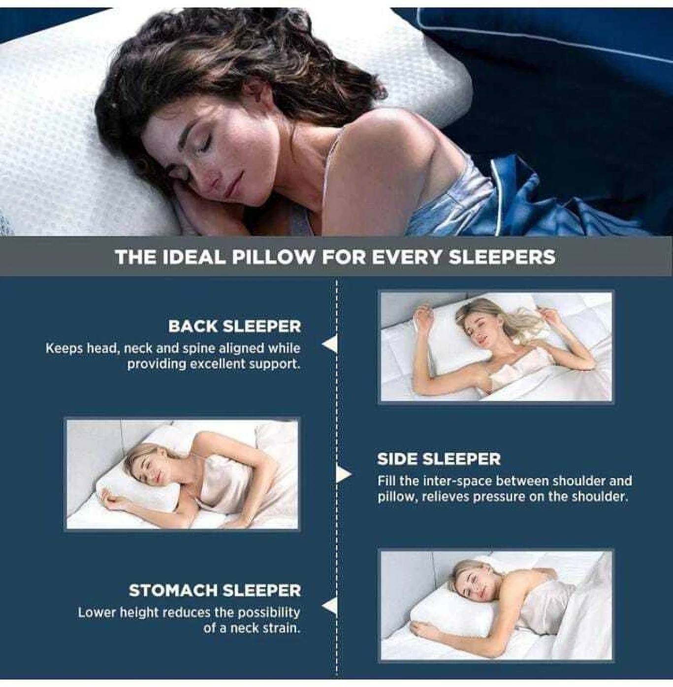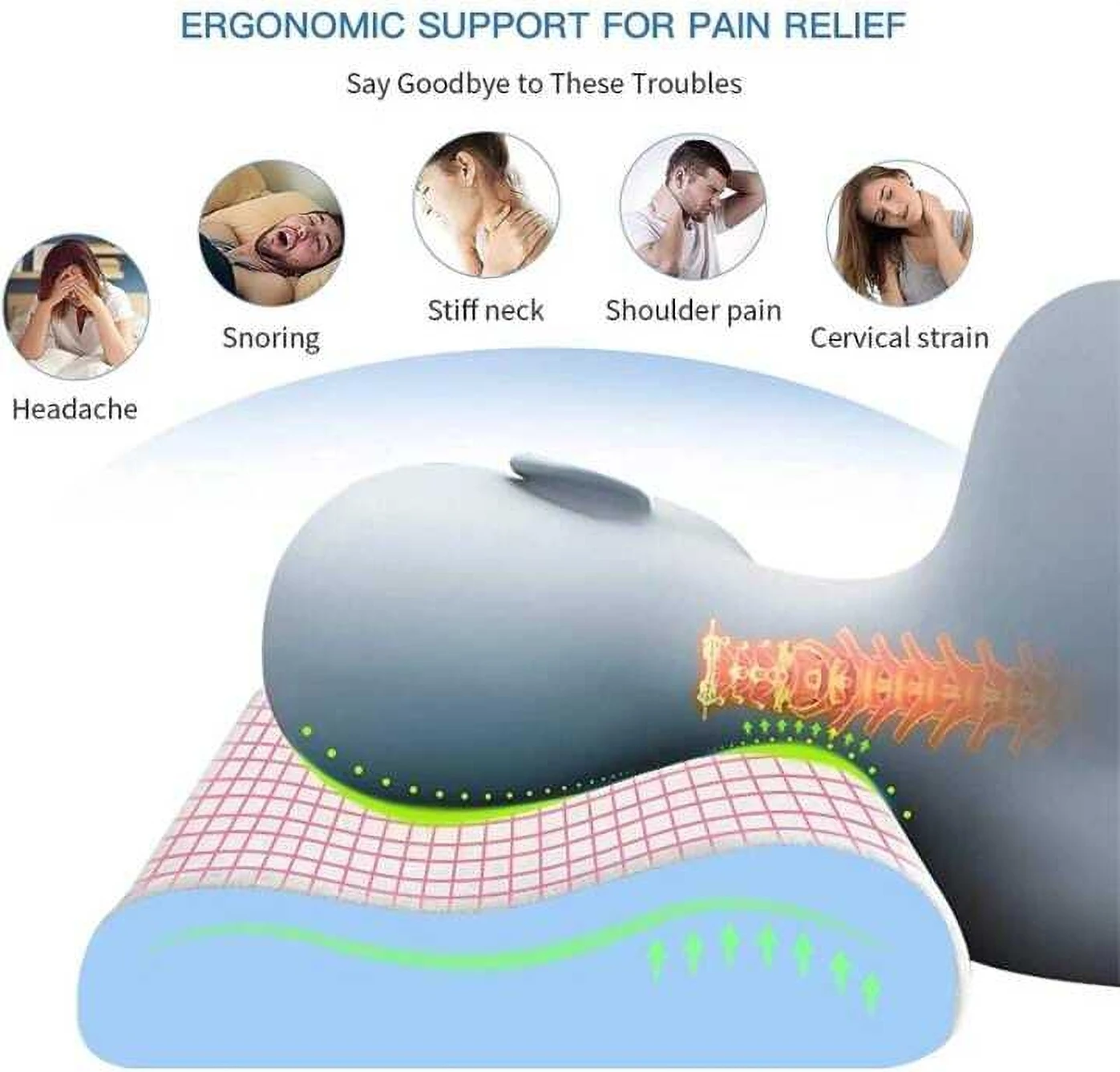 HKZ-YG Memory Foam Orthopaedic Pillow Pack of 1 Solid Cervical Contour Memory Foam Pillow + Anti-Snoring + Stomached + Side Sleepers